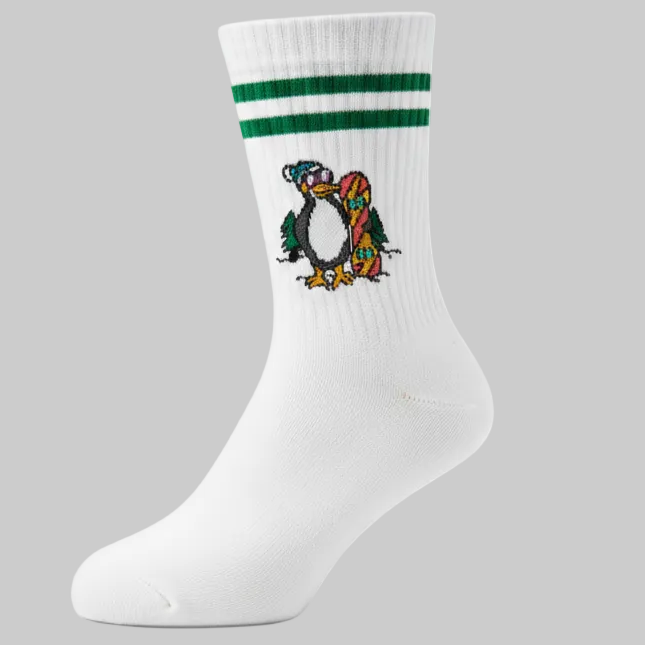 Chill Master es el calcetín del pingüino que no se inmuta ni en mitad de una tormenta de nieve. Con su tabla bajo las patas y actitud de leyenda, llega para conquistar la montaña (y tus pies) con estilo, comodidad y mucho carácter.