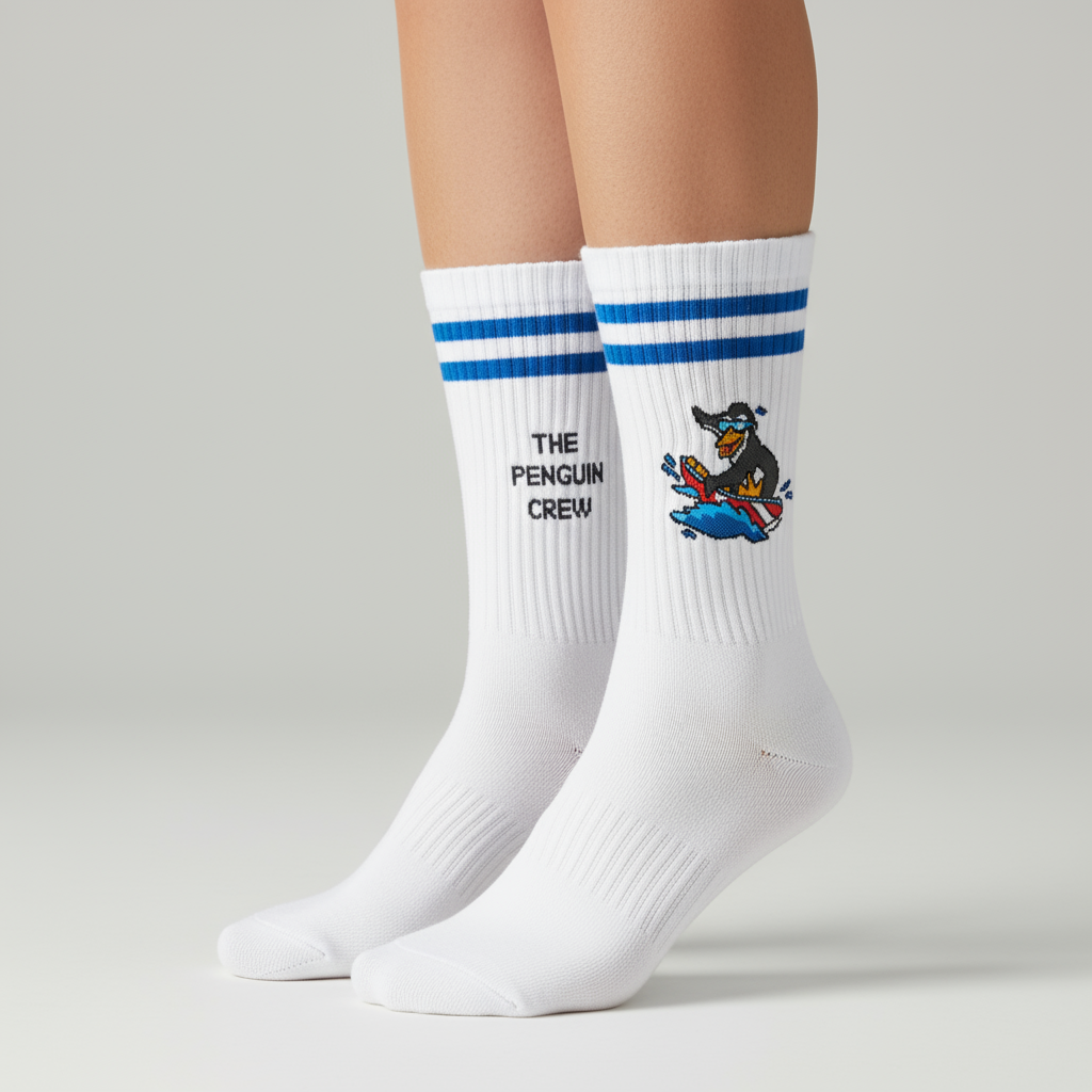Wave Rider trae al pingüino más relajado, playero y con flow para conquistar no la nieve… sino las olas. Con su tabla de surf y actitud despreocupada, este modelo es puro verano en tus pies, estés donde estés.